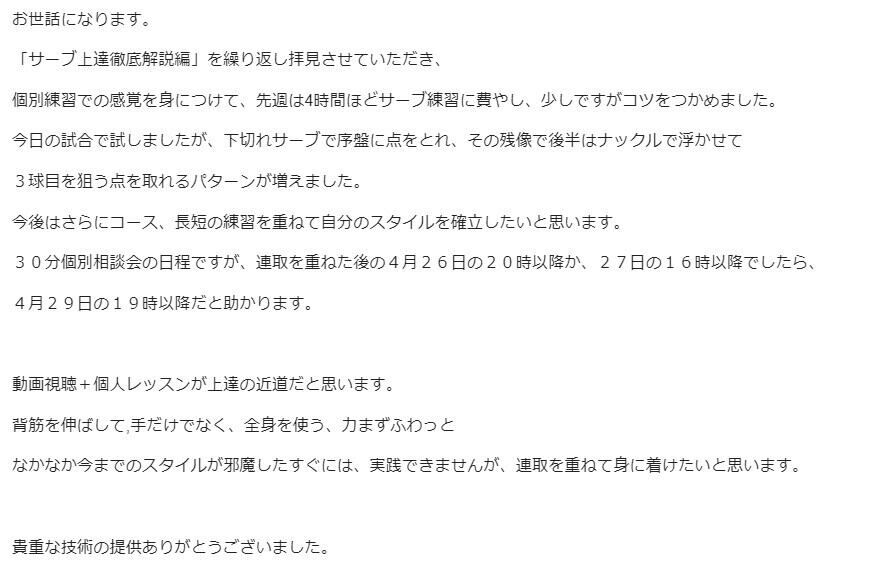 あなたのサーブ技術を一段と向上させるお手伝いを全力でさせていただきます!お問い合わせはショップのお問い合わせからお気軽にどうぞ。
