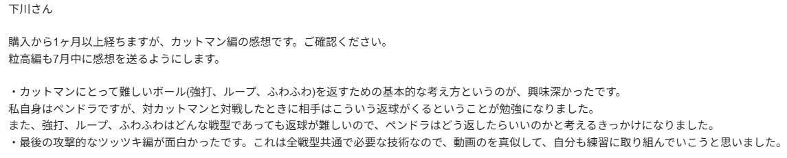 カットマンに特化した内容で、卓球の戦術や技術を最大限に引き出す方法が学べます!初心者から中上級者まで、幅広いレベルの方々に向けて設計されており、具体的な技術解説や効果的なトレーニング方法を提供し、ゲームにおける理解を深めることができます。自宅で手軽に学べるため、あなたのペースでじっくり取り組むことができるのも魅力のひとつです。